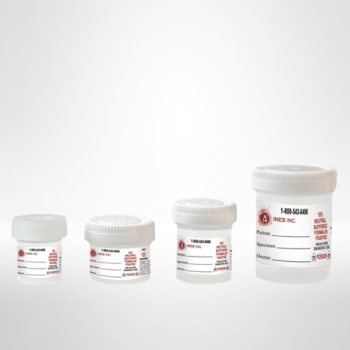 Tek-Select® clear plastic specimen transport containers provide a safe and cost-effective way to transport, store, and retrieve pathology specimens. Our prefilled containers are filled with the finest quality 10% neutral buffered formalin (NBF). The quality-designed dual-thread closure cap ensures almost no possible leakage of containers when properly used. All containers are labeled with an OSHA-approved, 3-color, highly visible label for instant identification to minimize health risk. The label provides ample space for patient information. Each box is marked with a lot code and expiration date. Our prefilled containers comply with all updated Federal and OSHA requirements.