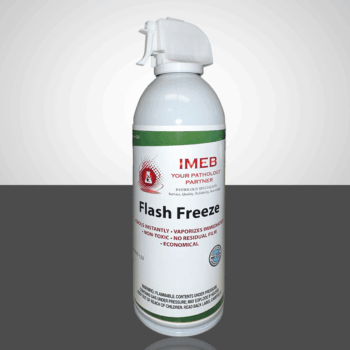 IMEB’s Flash Freeze offers instant cooling to ensure deeper penetration into paraffin blocks and microtome blades. This product cools and vaporizes instantly, is non-toxic, and leaves no residual film. Flash Freeze meets the federal guidelines of the Montreal Protocol and the U.S. Clean Air Act of 1990.